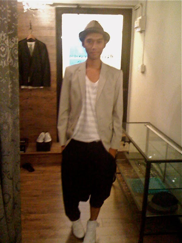 Next stop was Soho, where we checked out local independent boutiques. RD and I came across a shop that specialises in menswear and the result was a little fashion shoot that involved a Neil Barrett jacket and a pair of black drop crotch Comme des Garçons trousers (pictured on the left).
